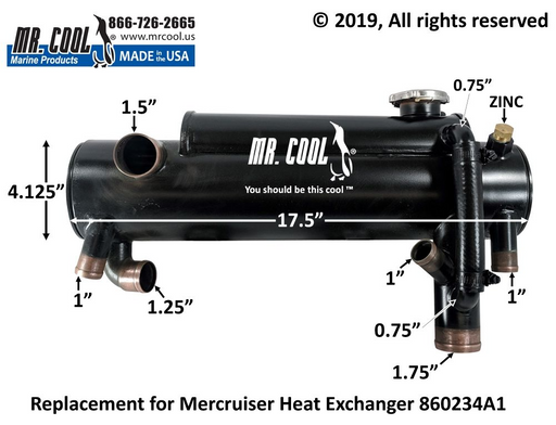 Mr Cool (USA)Mercruiser 860234A1 4.3L. 5.0L, 5.7L & 6.2L Heat Exchanger Replacement Replaces Mercruiser part no. 860234, 860234A1 & 860234P Used on Mer...