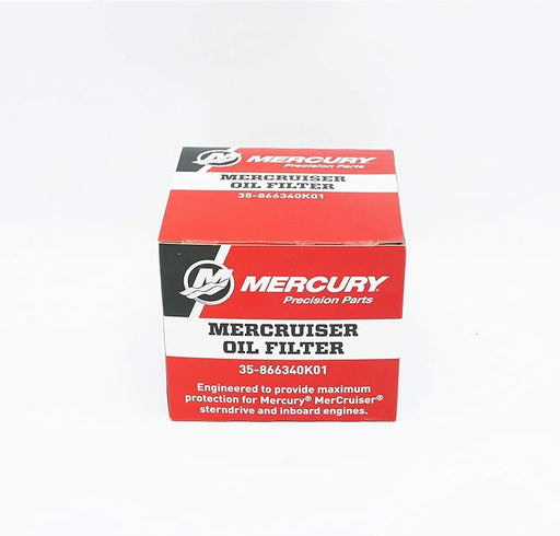 MercuryMercury Mercruiser Oil Filter 35-866340K01, 35-866340Q03 Used on most Mercruiser engines 3.0L, 5.0L, 5.7L, 6.2L, 7.4L, 8.1L & 8.2L. This is an ...
