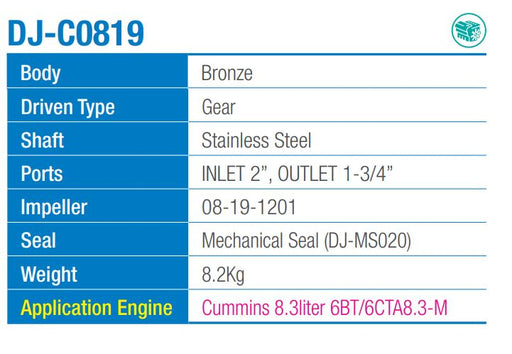 DJ PumpsCummins 6B5.9/ 6CTA8.3-M Seawater pump Aftermarket replacment with 2" inlet & 1-3/4" outlet Ports Replaces Sherwood P1716 / 1722 Series pumps ...
