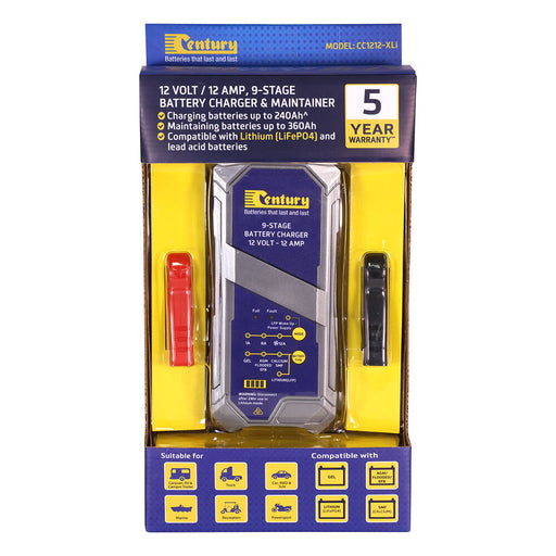 View full detailsCentury CC1212-Lithium 12V 12Amp 9 Stage Battery Charger