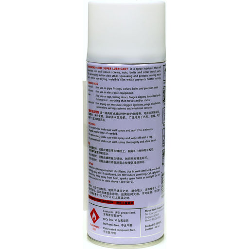 ThreebondThreeBond Super Lubricant is a spray lubricant that will penetrate rust and loosen screws, nuts, bolts and other metal parts. Will also stop squeak...