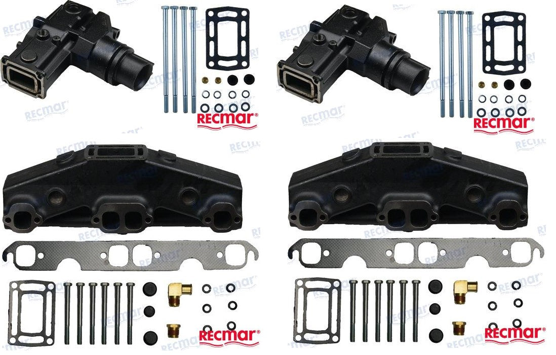 Manifold & riser kit to suit Volvo penta marine 5.0 & 5.7L V8 engines with Hi-Rise, extra tall 11.3" height risers.